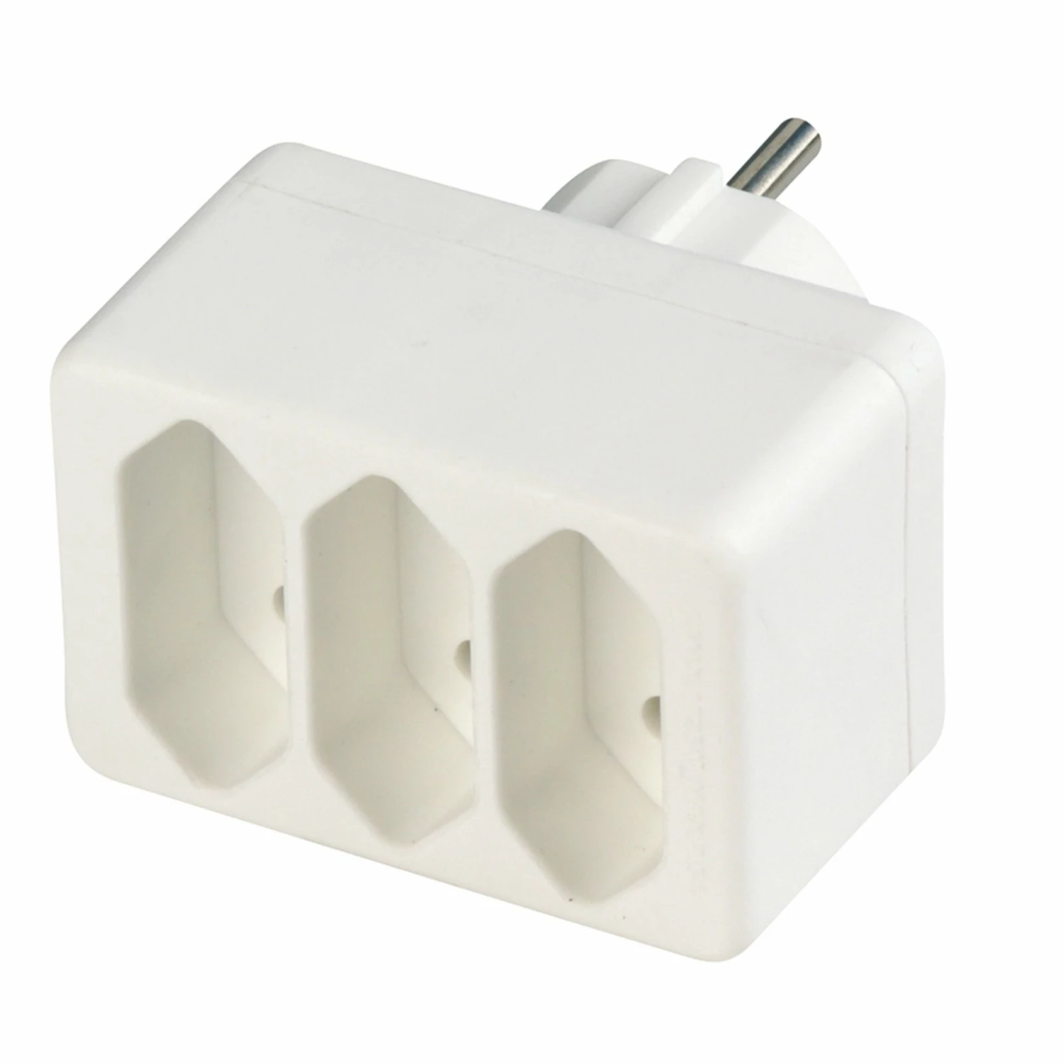 Übergangsstecker zum erweitern auf eine 3 Euro-Steckervariante in einer Schutzkontaktdose.