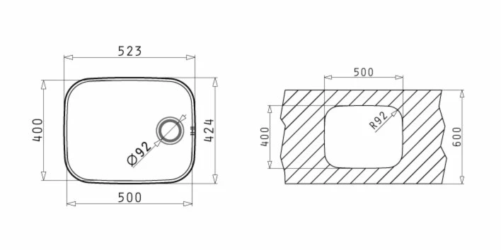 Dieses Unterbaubecken IRIS wurde aus poliertem Edelstahl gefertigt und ist mit einem Siebkorb-Ventil ausgestattet, der einen Durchmesser von 9,2 cm hat. Das Befestigungsmaterial ist im Lieferumfang mit inbegriffen.