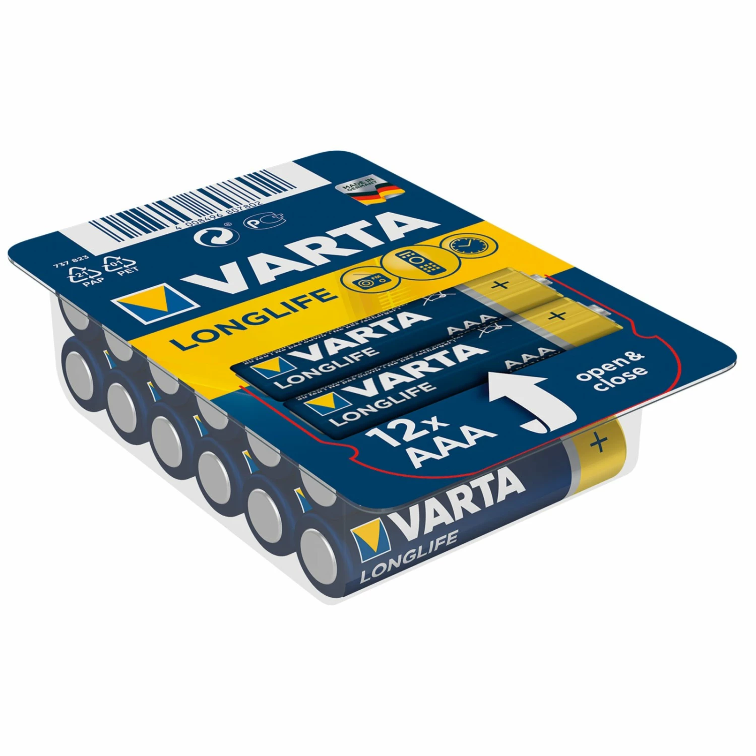Praktisches 12er-Set LONG LIFE AAA VARTA Batterien für Radios, Uhren, Fernbedienungen und viele weitere Elektrogegenstände.