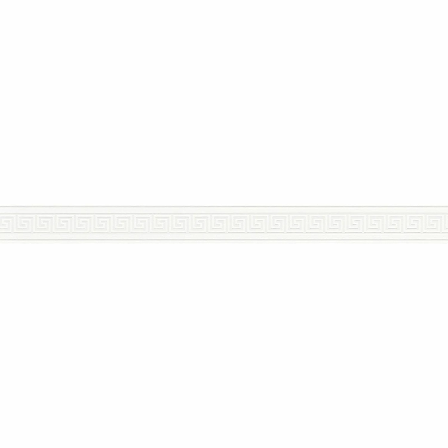 Cremefarben gemusterte Vinly-Borte für junges Wohnen. Diese Borte ist selbstklebend, benötigt somit kein Zubehör und ist besonders einfach anzubringen. Sie setzt einen besonders schönen Akzent zum Beispiel auf einer dunkleren Tapete.