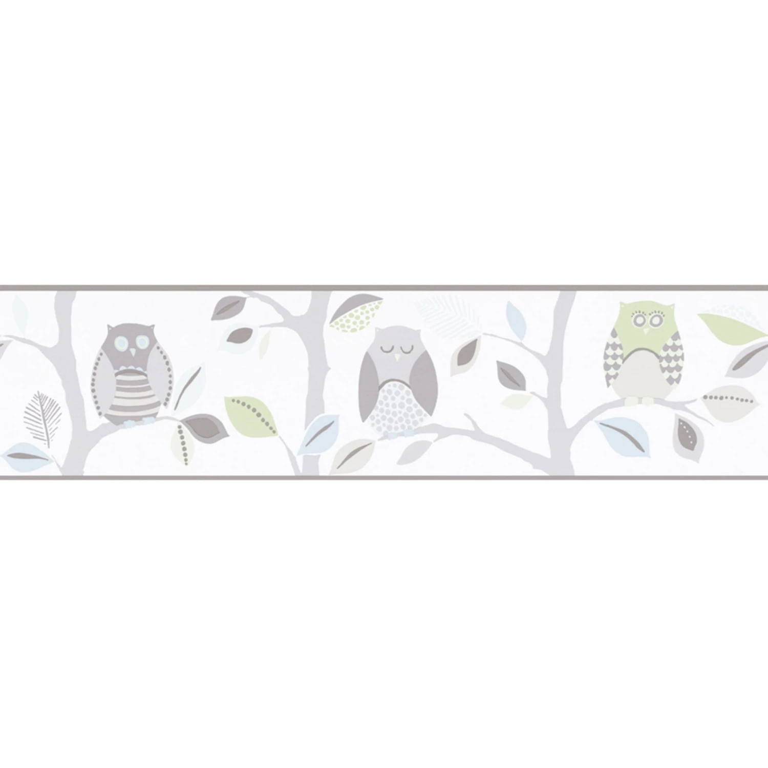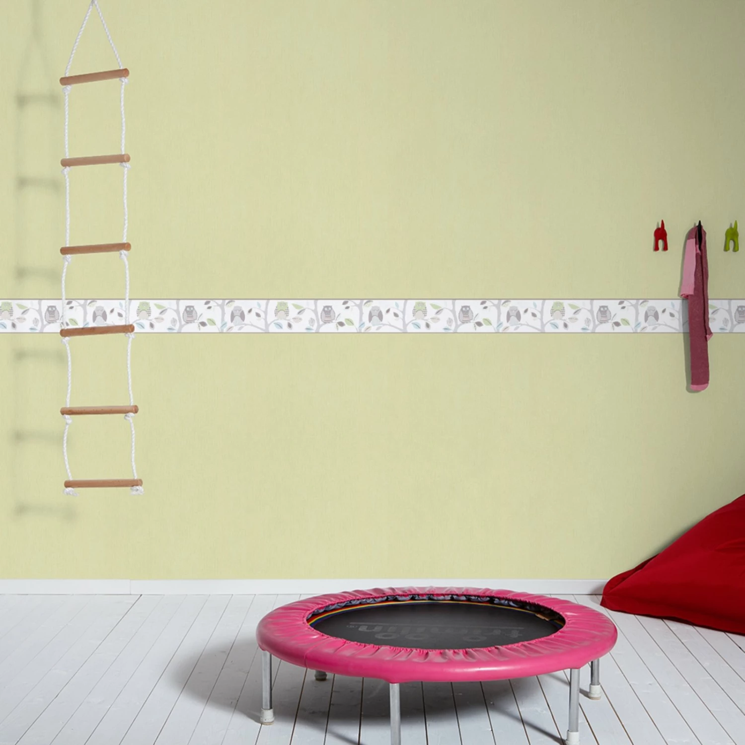 Naturfarbene Vinyl-Borte KIDS PARTY mit niedlichem Eulen-Motiv für die Kleinen. Diese Borte ist selbstklebend, benötigt somit kein Zubehör und ist besonders einfach anzubringen. Sie setzt einen besonders schönen Akzent zum Beispiel auf einer hellen Tapete.