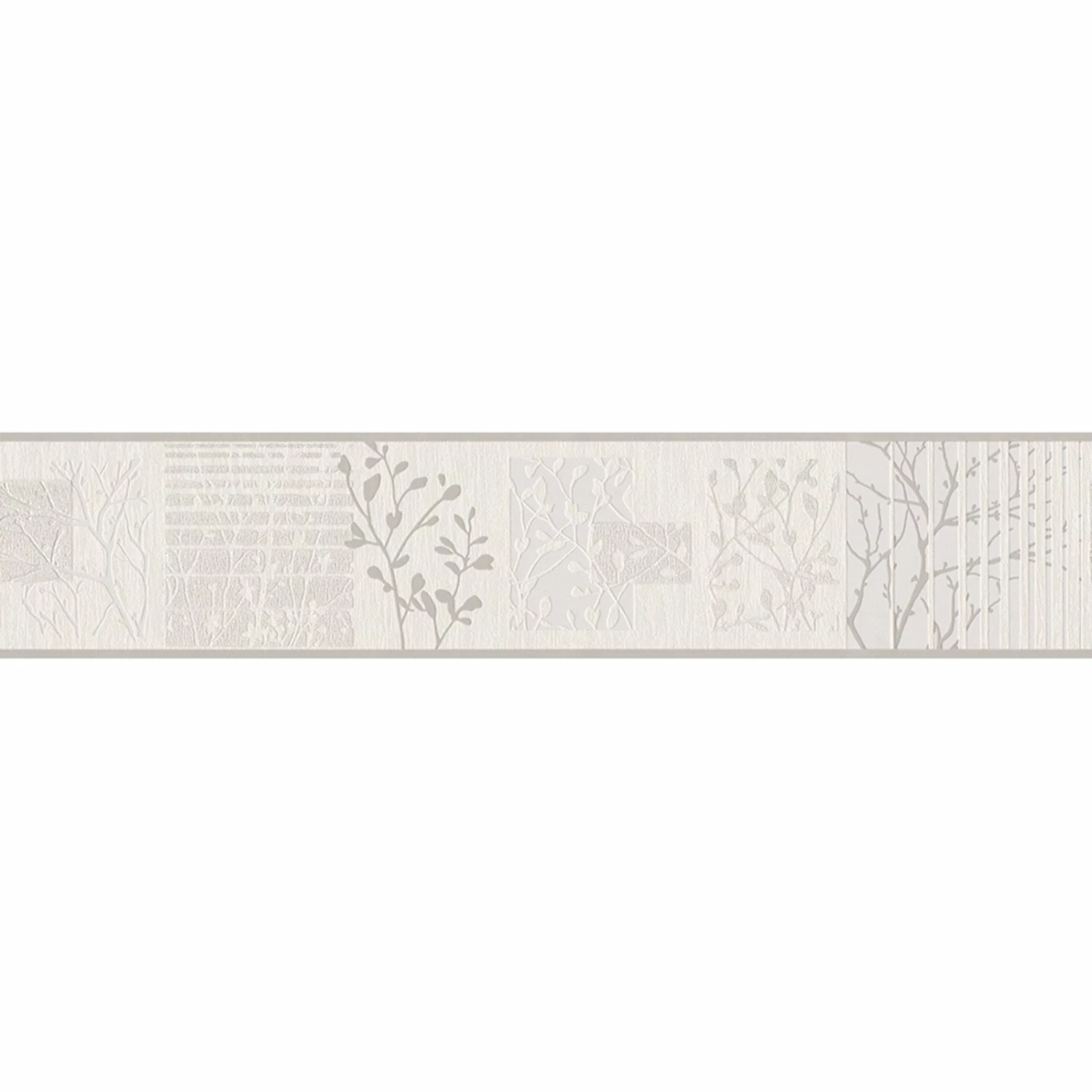 Grau und beigefarbene Vinyl-Borte LIFE 2 mit Pflanzengrafik. Diese Borte setzt einen besonders schönen Akzent zum Beispiel auf einer weißen Tapete.