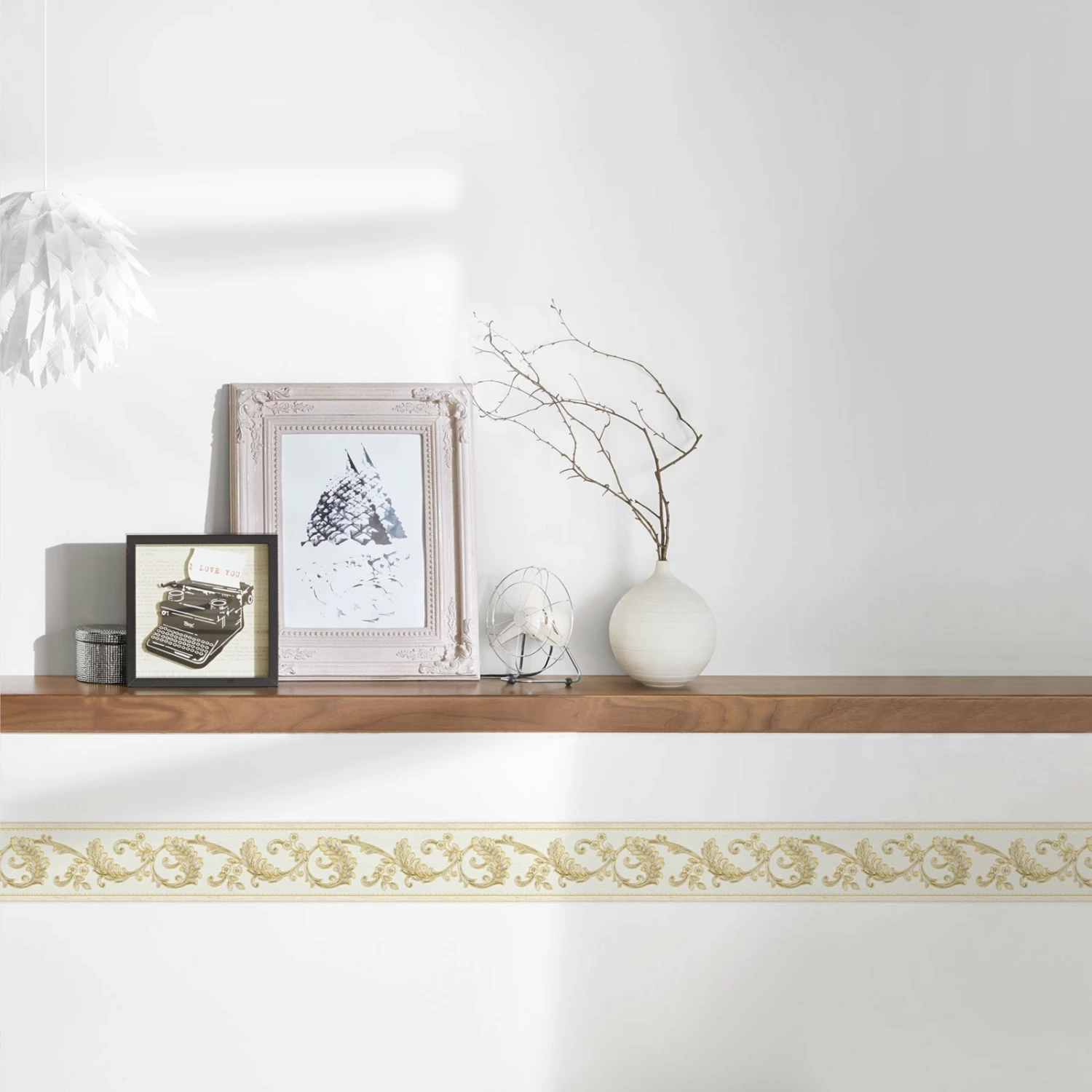 Diese selbstklebende Tapetenborte in Creme-Gold Metallic bringt einen besonderen Touch in Ihren vier Wänden.