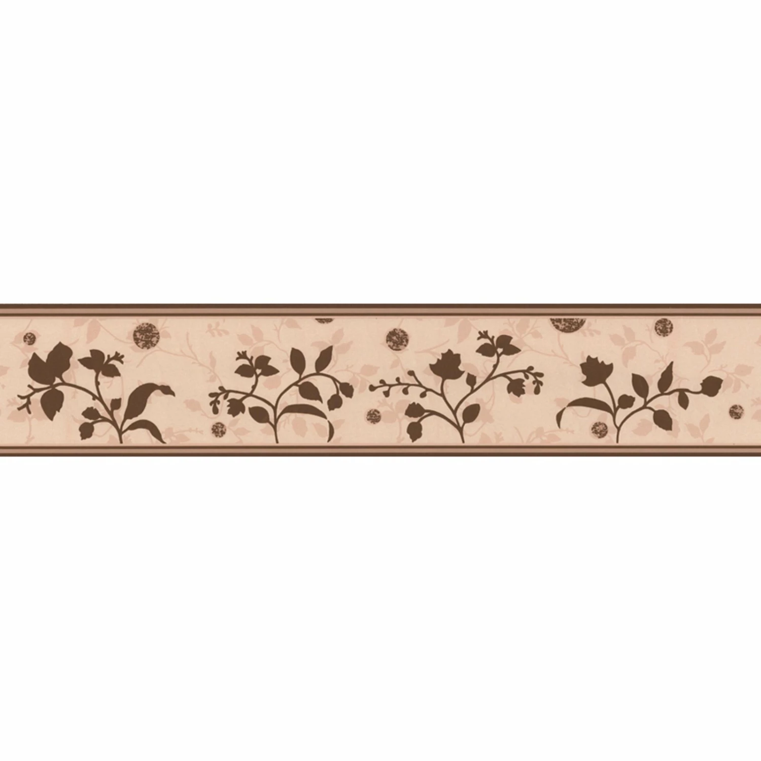 13 cm breite und braun geblümte Vinyl-Borte ONLY BORDERS 7. Diese Borte ist selbstklebend, benötigt somit kein Zubehör und ist besonders einfach anzubringen. Sie setzt einen besonders schönen Akzent zum Beispiel auf einer hellen Tapete.
