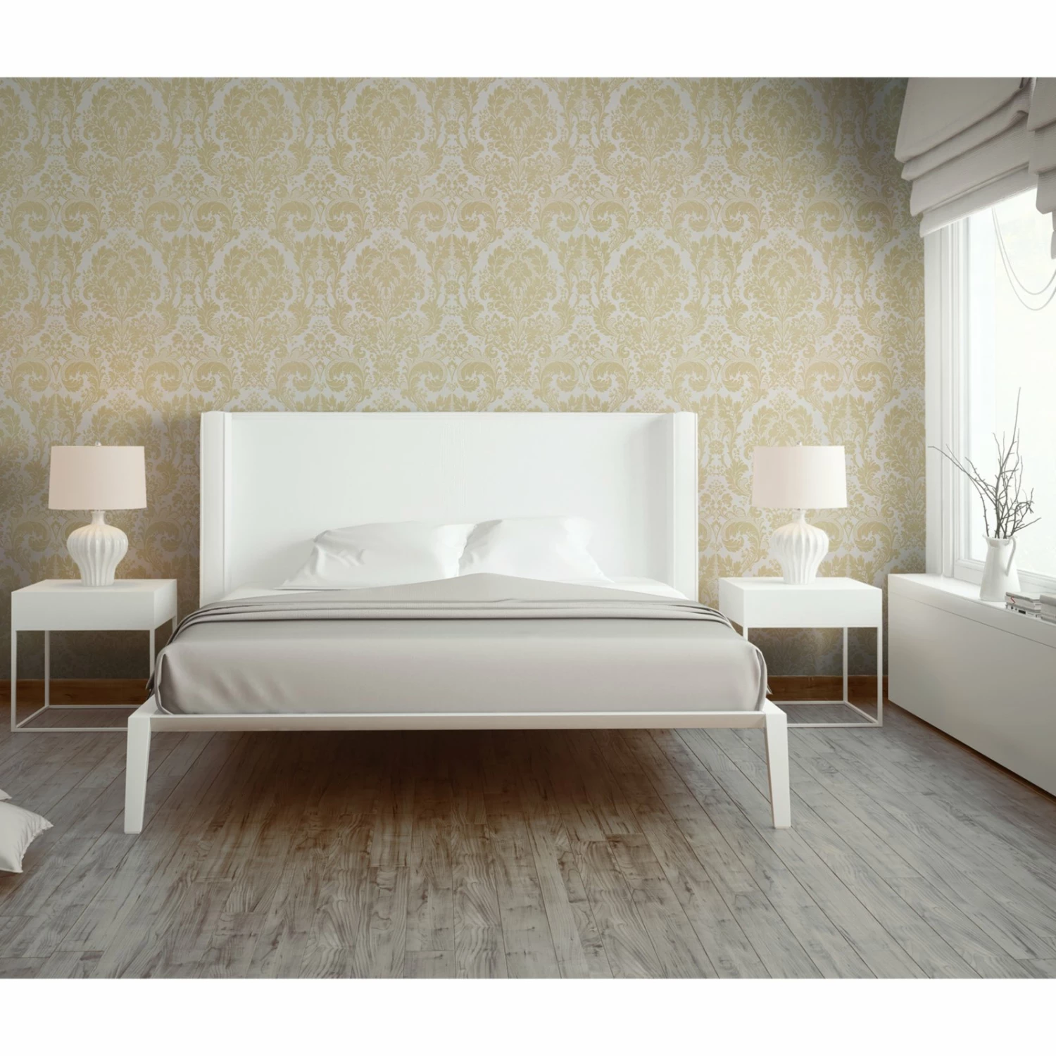 Setzen Sie mit dieser Vinyltapete KINGSTON tolle Akzente in Ihren Räumlichkeiten! Das Barock-Muster in Beige-Weiß Metallic wird eine charmante Atmosphäre versprühen und für ein tolles Wohnambiente sorgen.