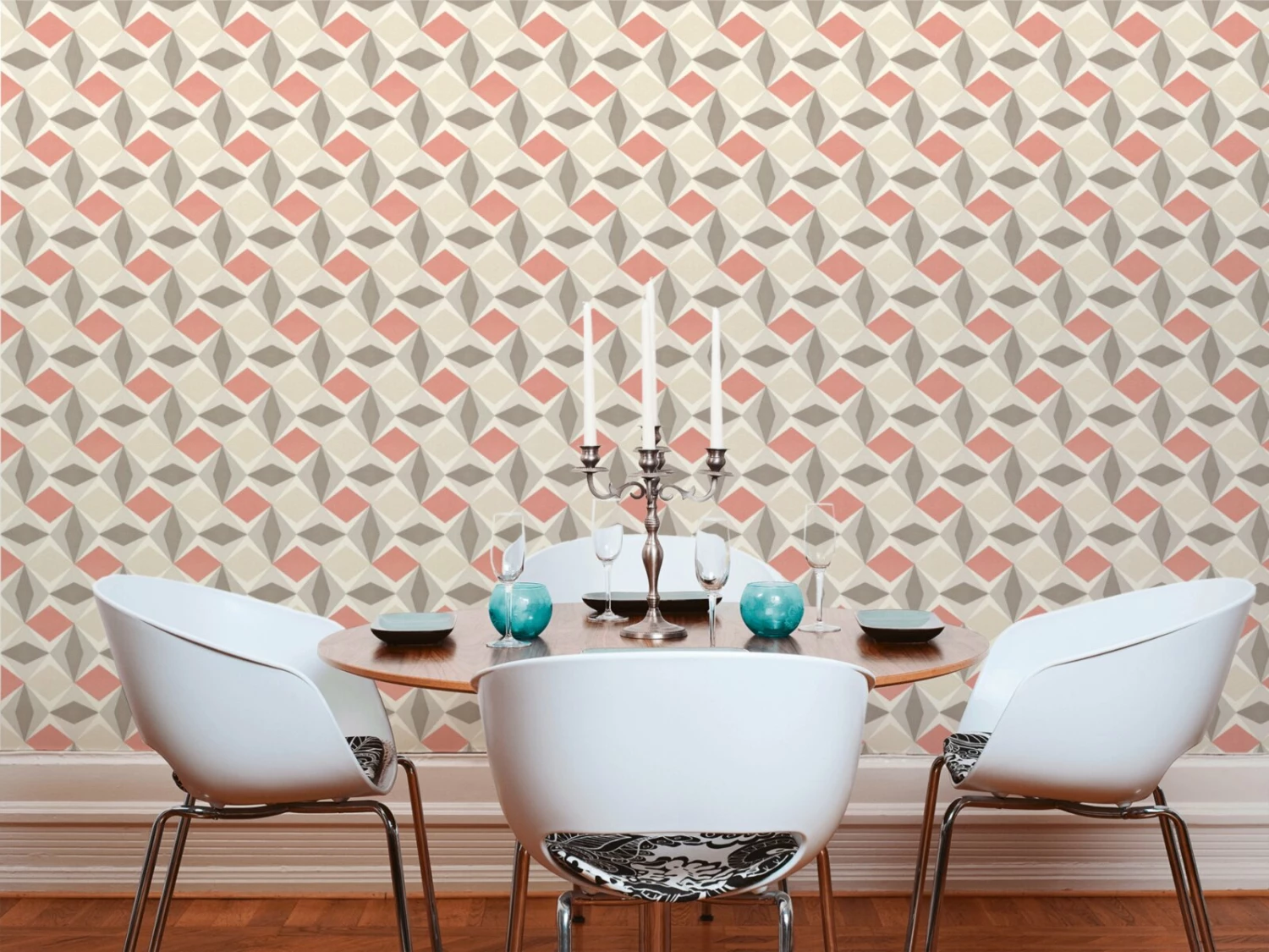 Verleihem Sie ihrem Wohnraum mit dieser Vliestapete einen Retro-Touch. Eine gleichmäßige Grafik in Beige, Braun und Rot, die in jedem Fall zum neuen Hingucker in Ihrem Wohnraum wird. Pinseln Sie hierfür einfach den Kleister an die Wand und bringen die Tapete mit einem geraden Ansatz von 32 cm an der Wand an.