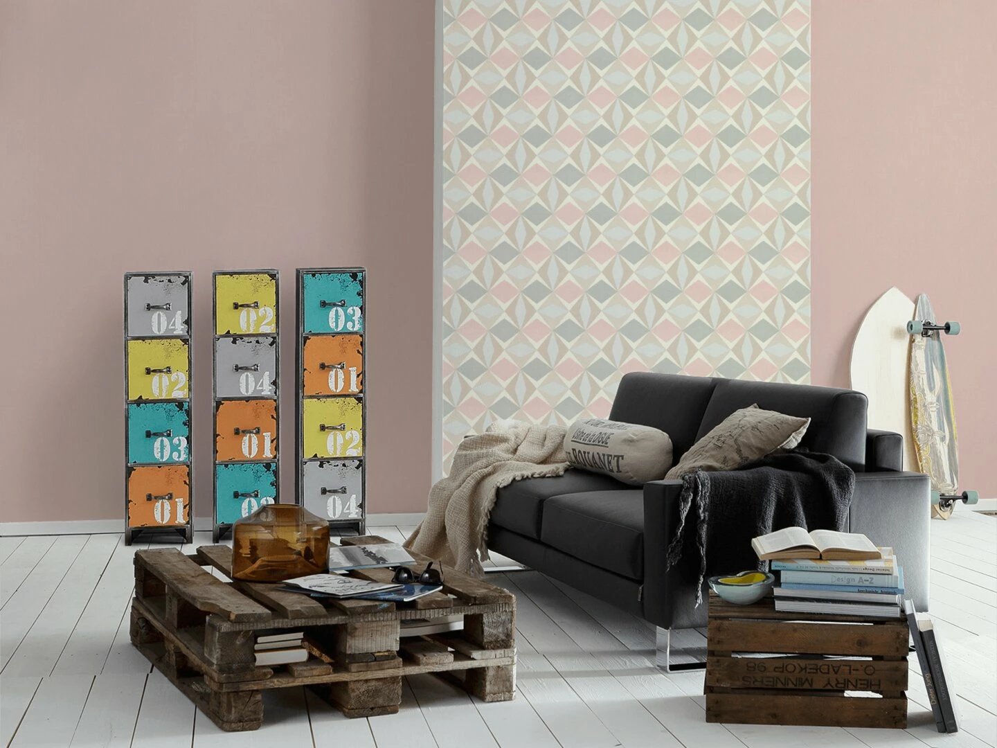 Vliesapete – beige-grau-rosa – Grafik – 10 Meter