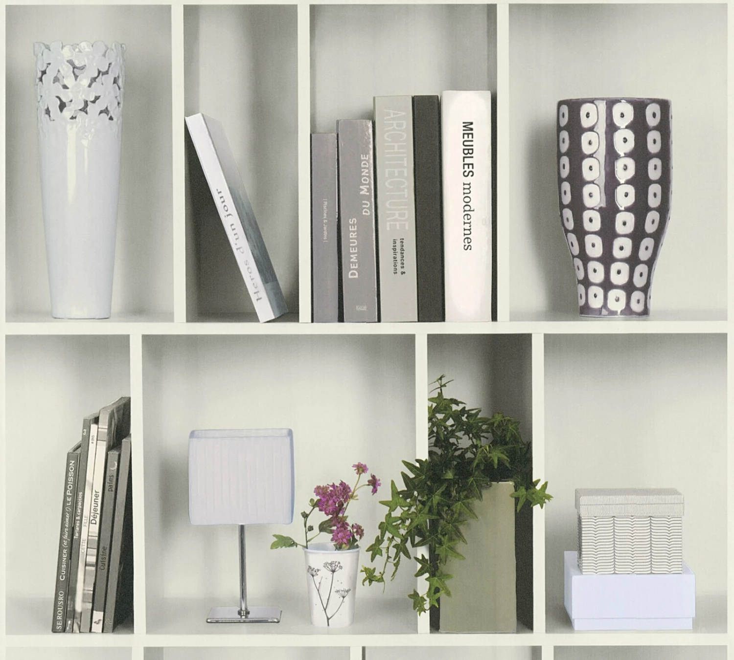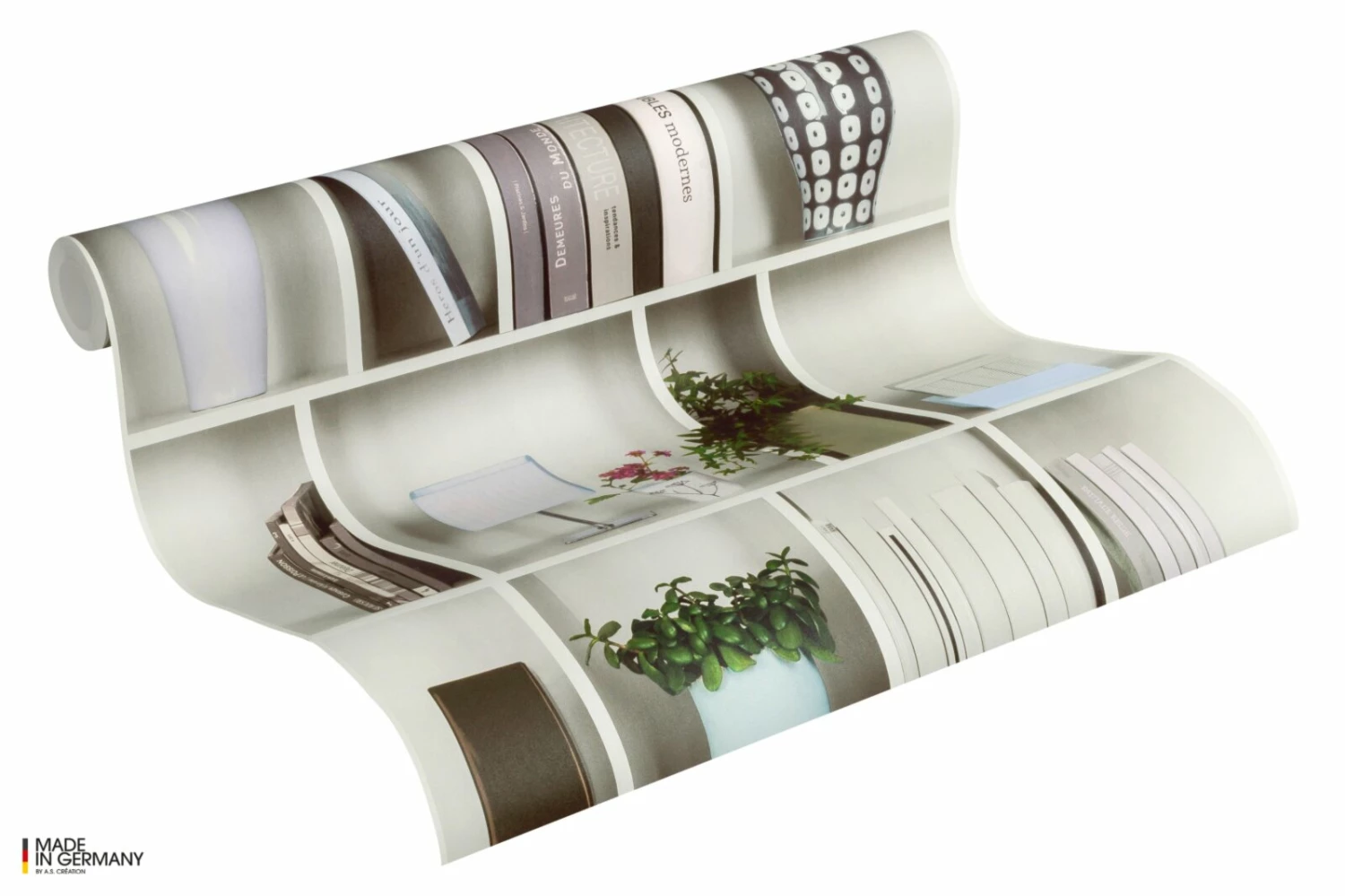 Diese Vliestapete im Regaldesign verleiht Ihren Räumlichkeiten einen charmanten und mordernen Look. Sie kann ansatzfrei angebracht werden und ist zudem restlos abziehbar.