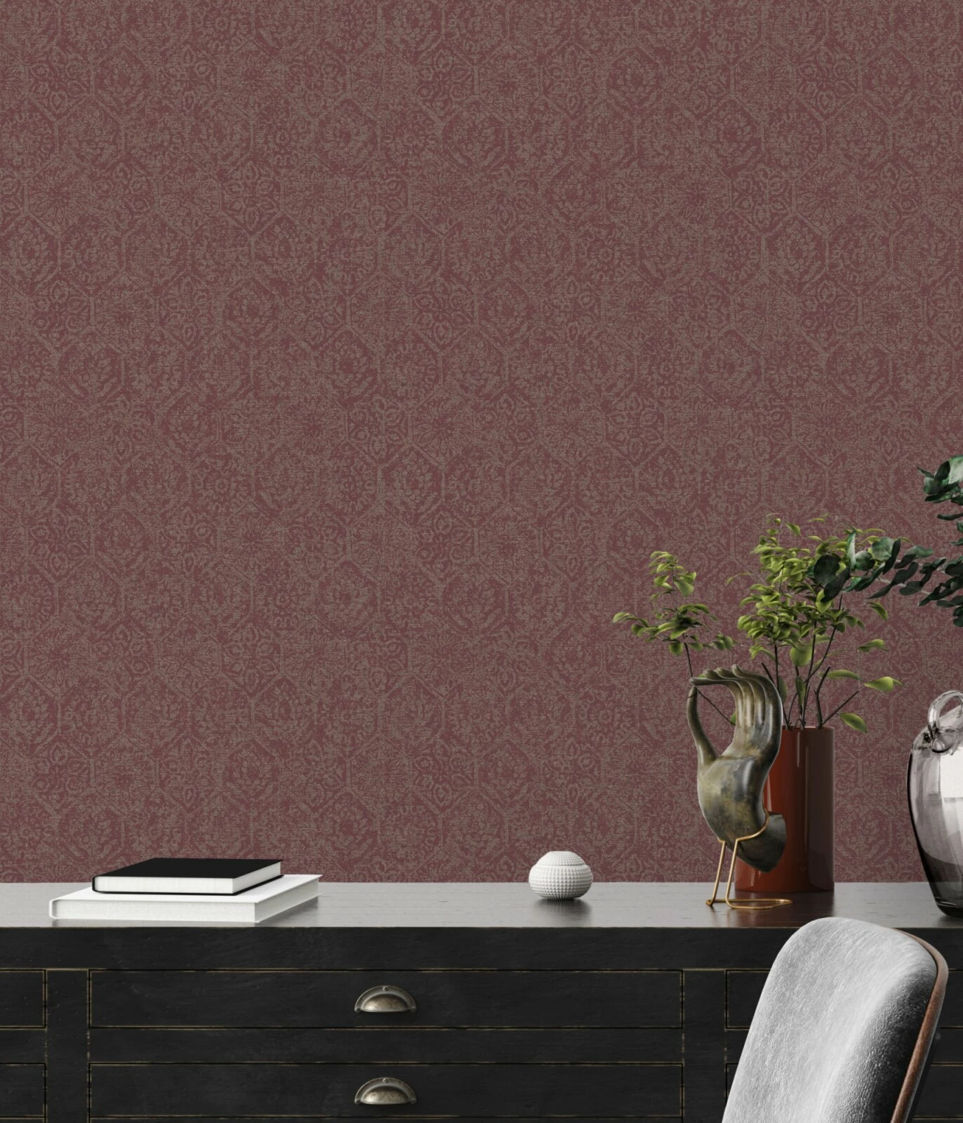 Vliestapete – Barock – rot – 10 Meter