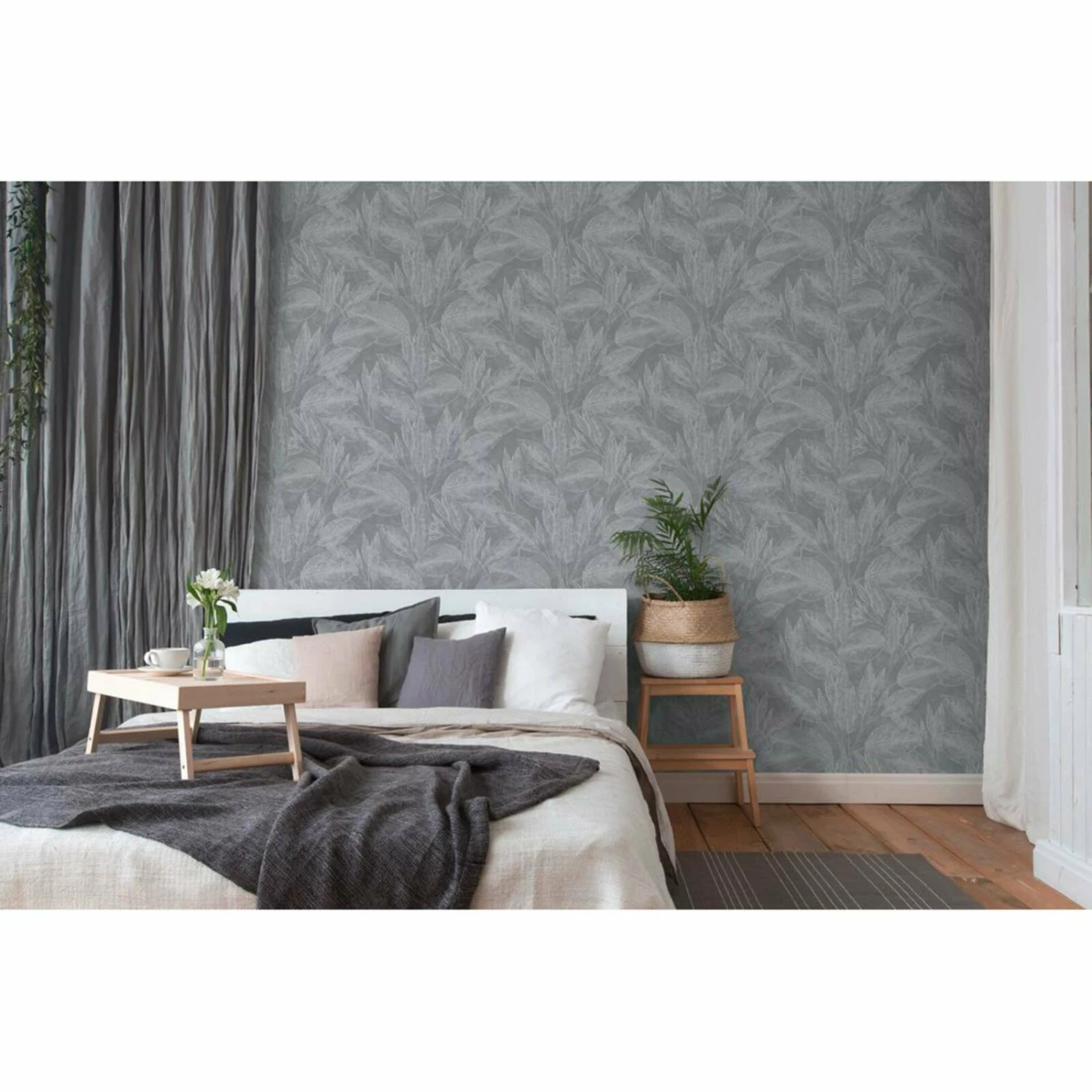 Vliestapete – Blätter – anthrazit – 10 Meter