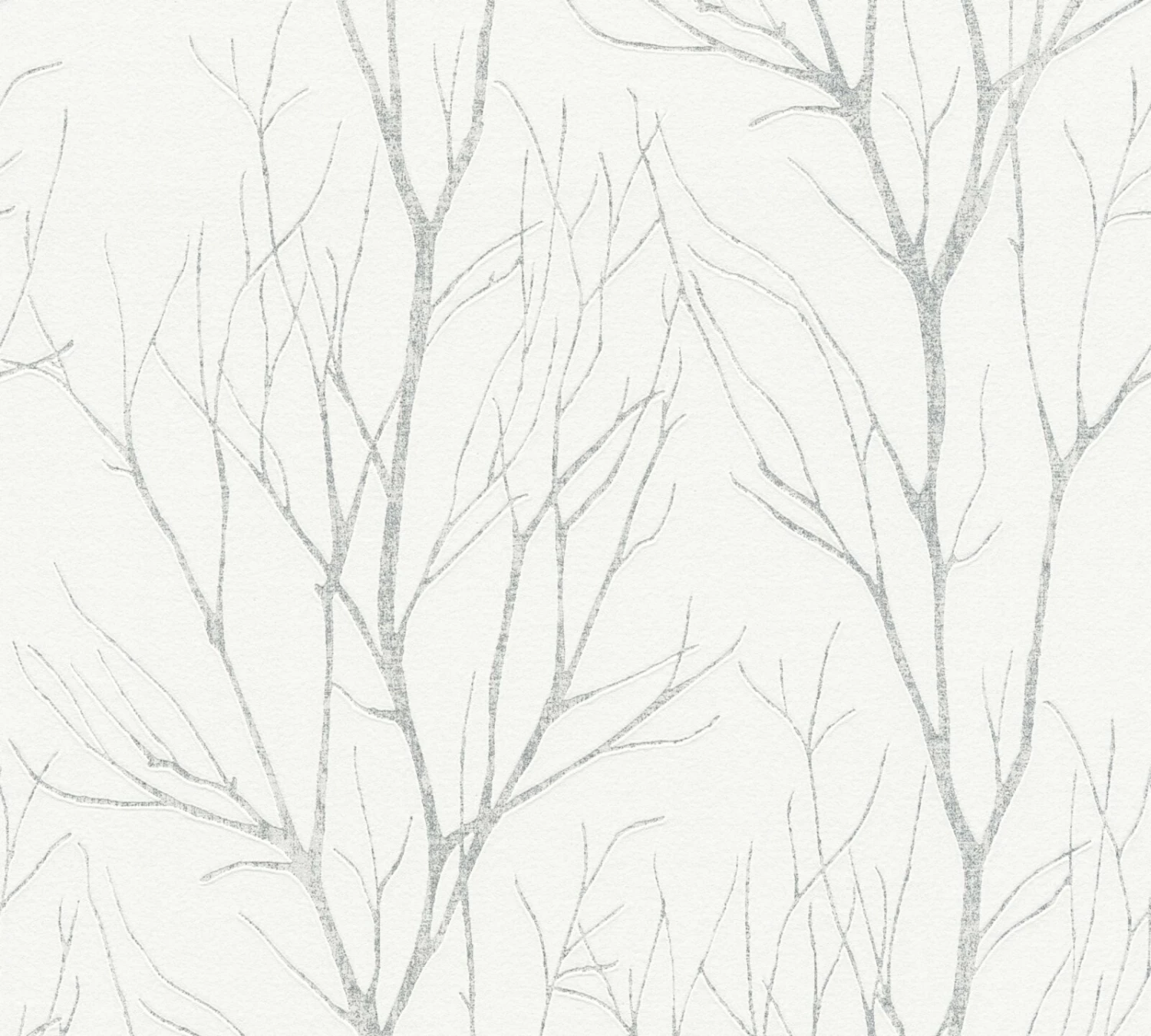 Vliestapete BLOOMING – weiß-grau – 10 Meter
