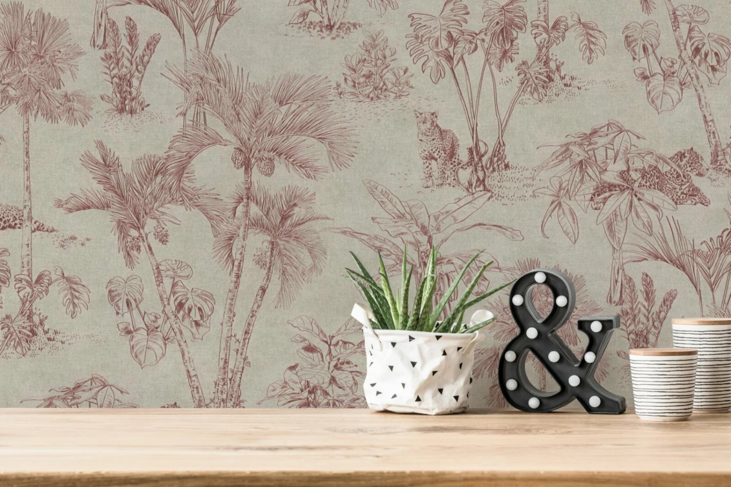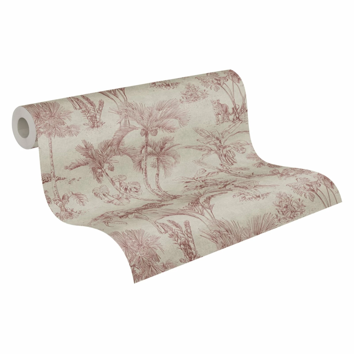Vliestapete – Blumen – creme-rot – 10 Meter