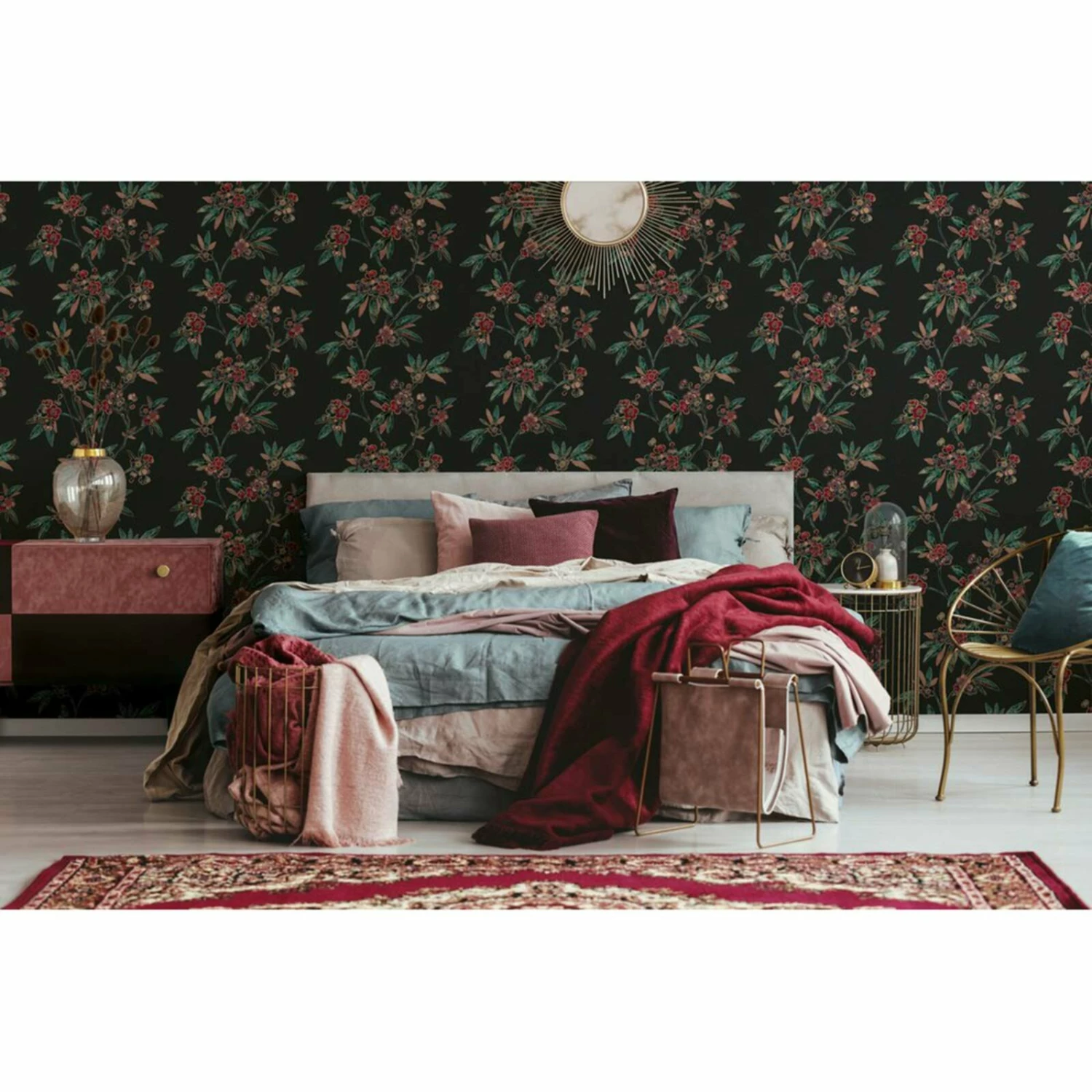 Sorgen Sie für einen edlen Touch in Ihren Wohnräumen durch eine Akzentwand in dieser Vliestapete mit Blütenranken. Das schwere Schwarz wird durch die Blütenranken ausgeglichen. Dadurch entsteht ein einzigartiges Raumbild. Die Tapete kann ohne Einweichzeit auf die Wand aufgebracht werden. Dies macht die Anbringung durch Laien möglich.