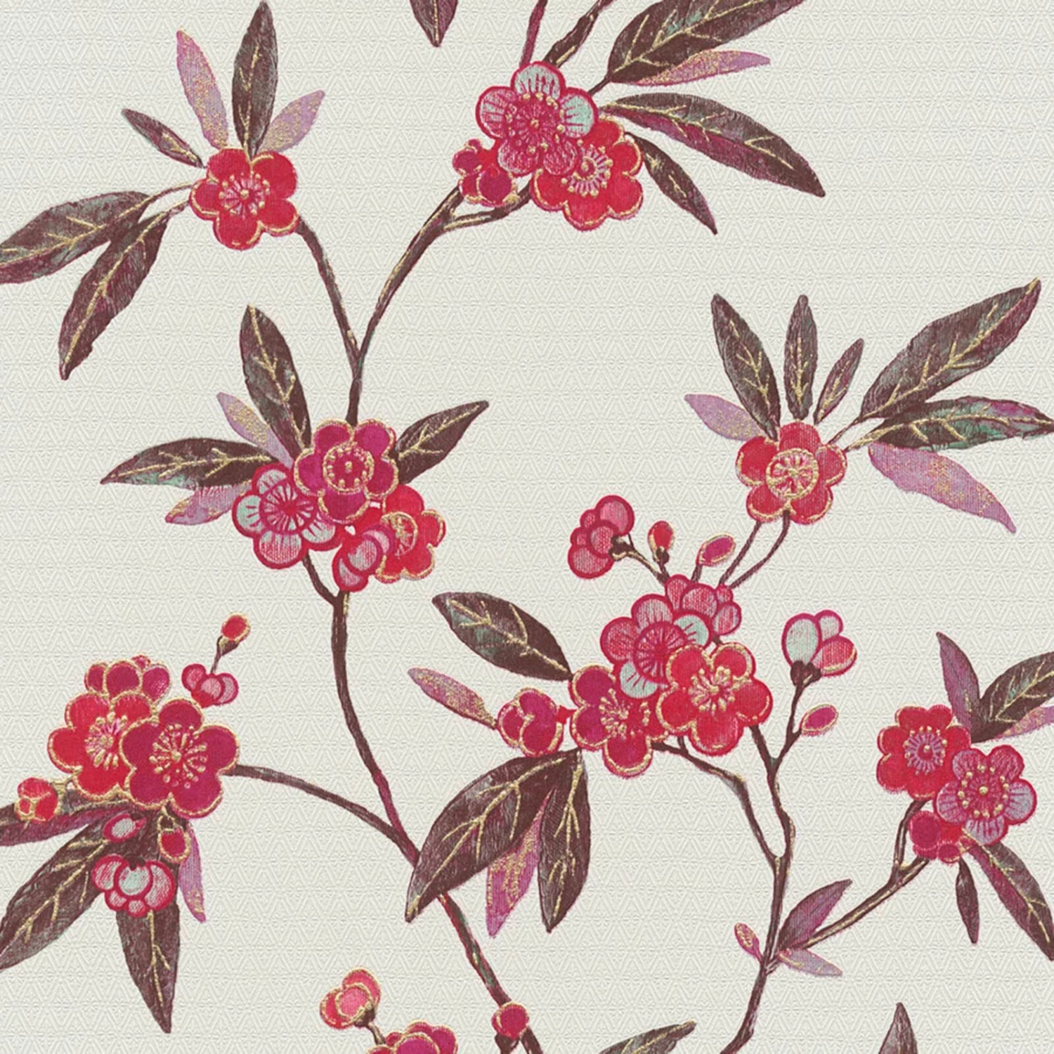 Vliestapete – Blütenranke – weiß-rot – 10 Meter