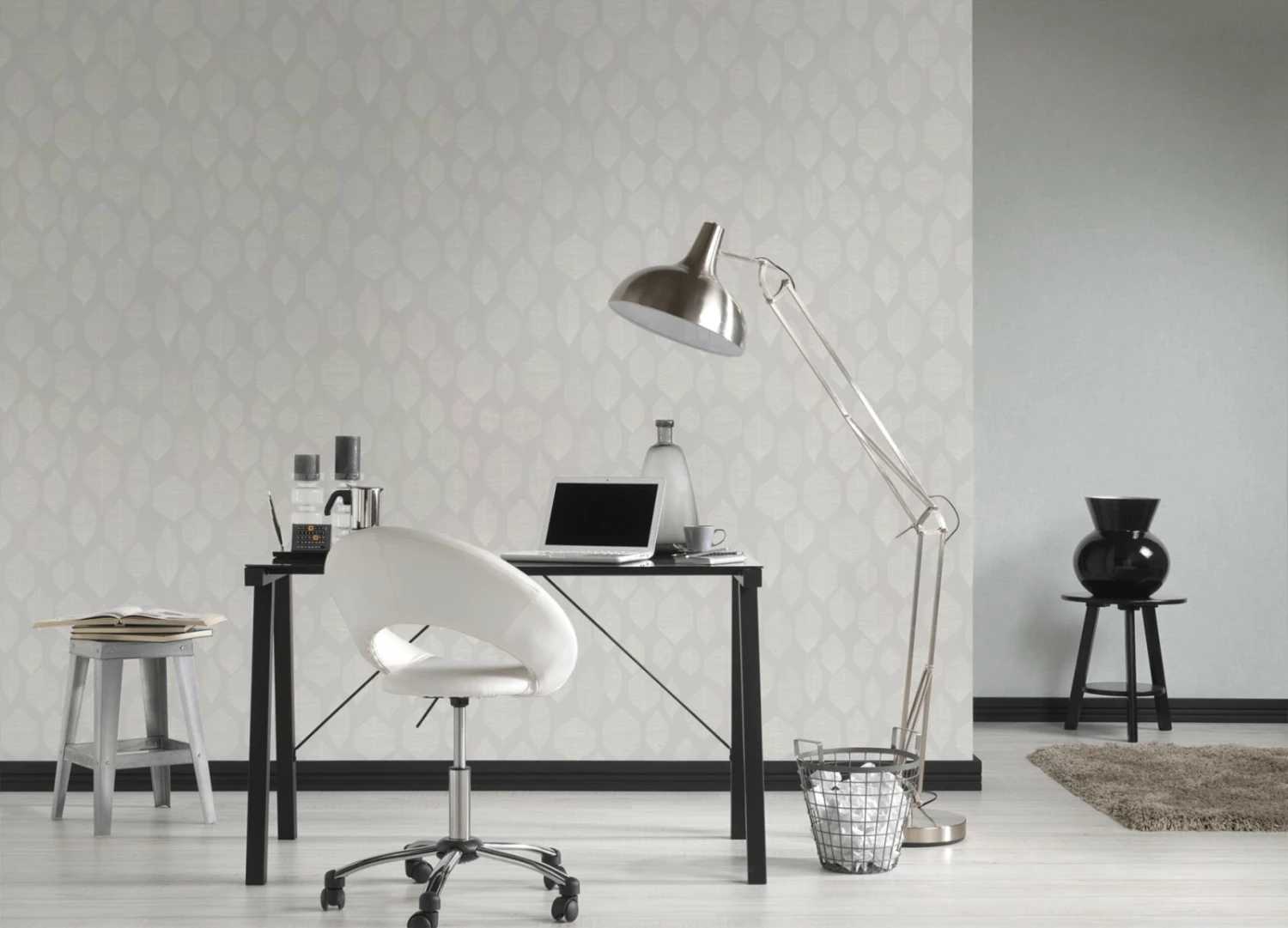 Die graue Vliestapete mit weißen Blättern sorgt in Ihren Räumen für eine fröhliche Wandgestaltung. Sie macht Ihre Wohnung zu einem Ort der Ruhe und Entspannung.