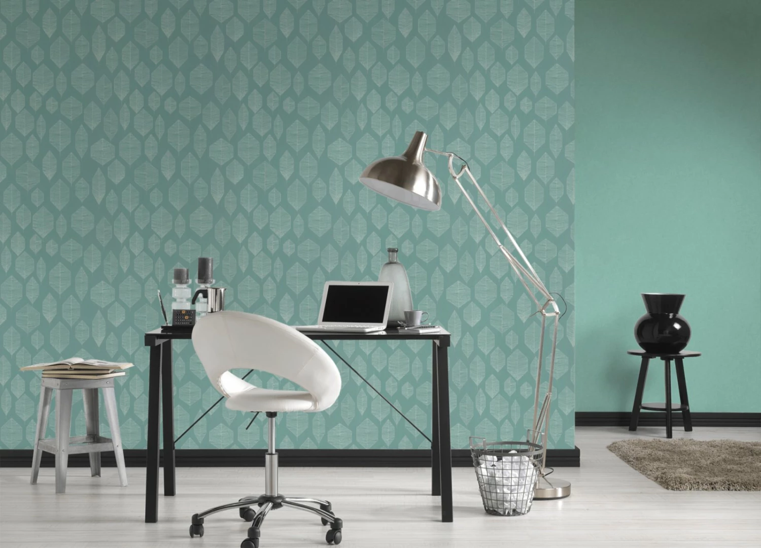 Die grüne Vliestapete mit weißen Blättern sorgt in Ihren Räumen für eine fröhliche Wandgestaltung. Sie macht Ihre Wohnung zu einem Ort der Ruhe und Entspannung.