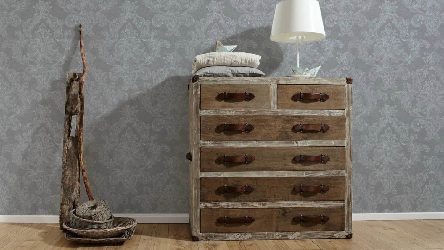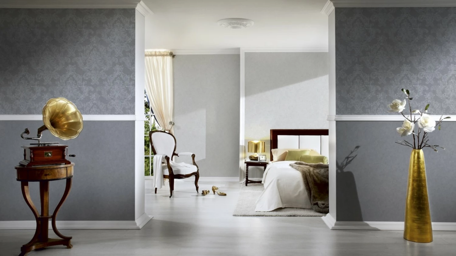 Die Vliestapete der Kollektion ELEGANCE 3 in den Farben Weiß und Grau überzeugt mit einem wunderschönen und eleganten Muster im Barock-Stil. Ein absoluter Blickfang und auch noch toll zu kombinieren. Zudem ist die Tapete langlebiger dank hoher waschbeständigkeit und guter Lichtbeständigkeit.
