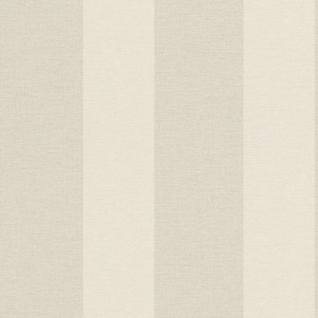 Für Wände können Streifen nie breit genug sein – wohingegen man in der Mode lieber Abstand davon halten sollte. Diese Blockstreifen kommen aber unter Garantie sehr kleidsam für Ihr Zuhause daher und sind in der klassischen Wohnwelt immer voll im Trend. Die zarten Braun- und Beigetöne heben den leinentuchartigen Untergrund des Tapetenvlieses besonders schön hervor.