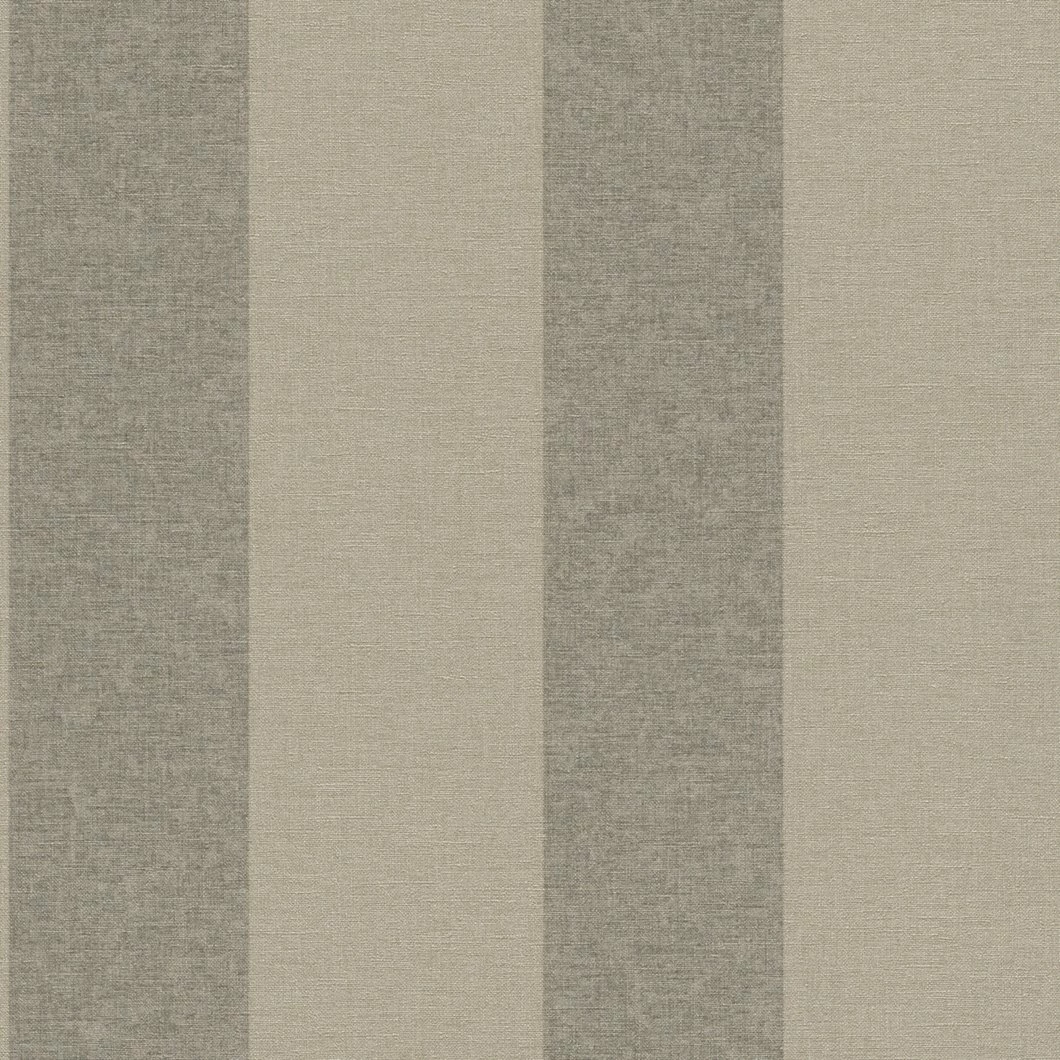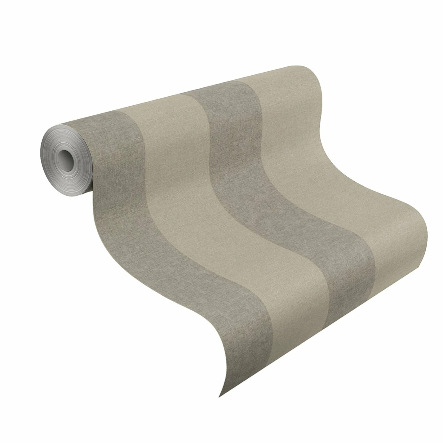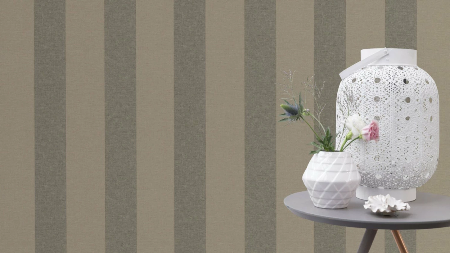 Für Wände können Streifen nie breit genug sein – wohingegen man in der Mode lieber Abstand davon halten sollte. Diese Blockstreifen kommen aber unter Garantie sehr kleidsam für Ihr Zuhause daher und sind nicht nur in der klassischen Wohnwelt immer voll im Trend. Warmes Taupe und edles Schwarz heben den leinentuchartigen Untergrund des Tapetenvlieses besonders schön hervor.