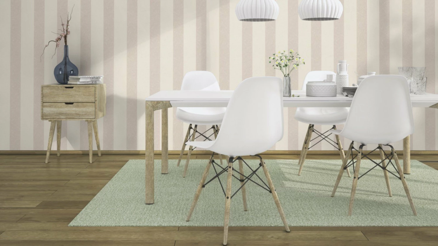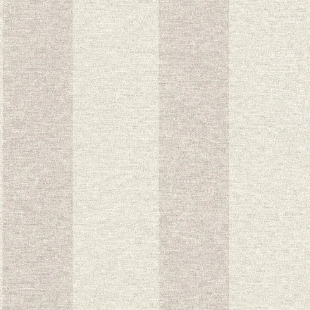 Für Wände können Streifen nie breit genug sein – wohingegen man in der Mode lieber Abstand davon halten sollte. Diese Blockstreifen kommen aber unter Garantie sehr kleidsam für Ihr Zuhause daher und sind nicht nur in der klassischen Wohnwelt immer voll im Trend. Zartes Grau und pastellenes Beige heben den leinentuchartigen Untergrund des Tapetenvlieses besonders schön hervor.