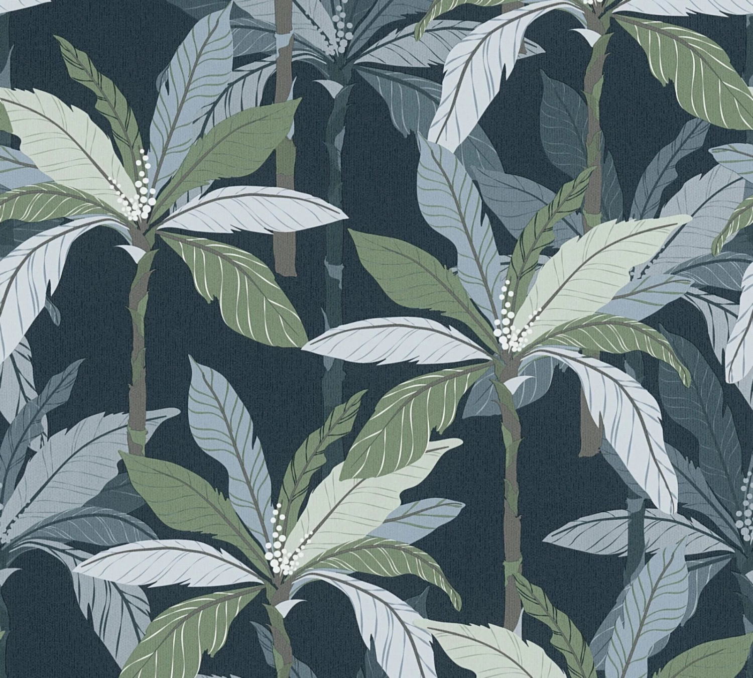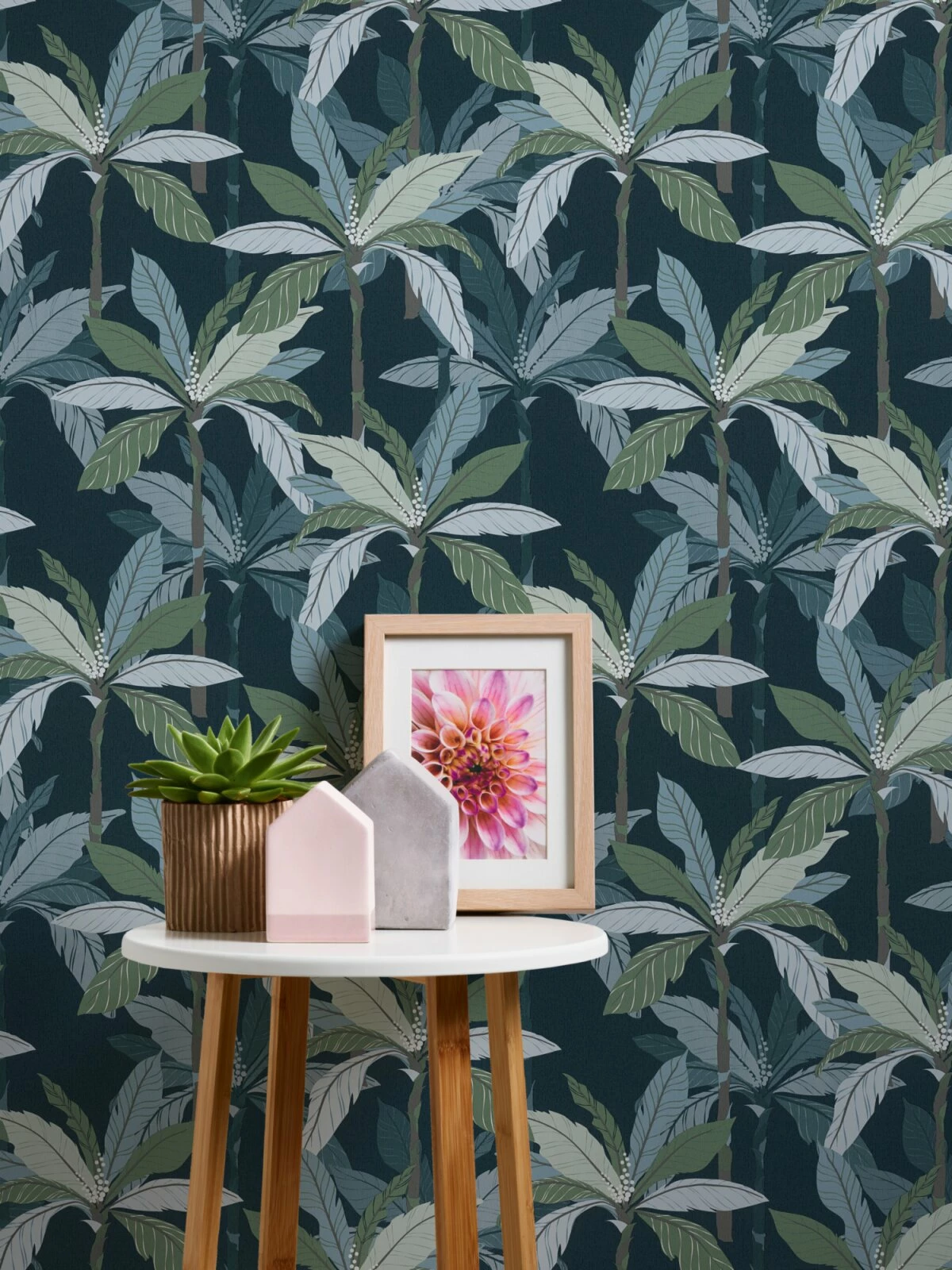 Eine besondere Dschungeltapete im Farbton Grün-Blau verwandelt Ihr Zuhause in eine Wohlfühloase. Die Tapete hat die Abmessungen 10,05 x 0,53 Meter mit einem geraden 53 cm Rapport. Die Palmentapete überzeugt durch ihr außergewöhnliches Muster. Der bei dieser Tapete verwendete Vliesträger ist FSC-Mix zertifiziert. Der Zusatz-Mix steht für die Verwendung von Holz aus FSC zertifizierten Wäldern und den Einsatz von Recyclingmaterial. Als Trägermaterial wird ein Vlies verwendet, welches überwiegend aus Zellstoff und textilen Fasern besteht, die aus Holz gewonnen werden.