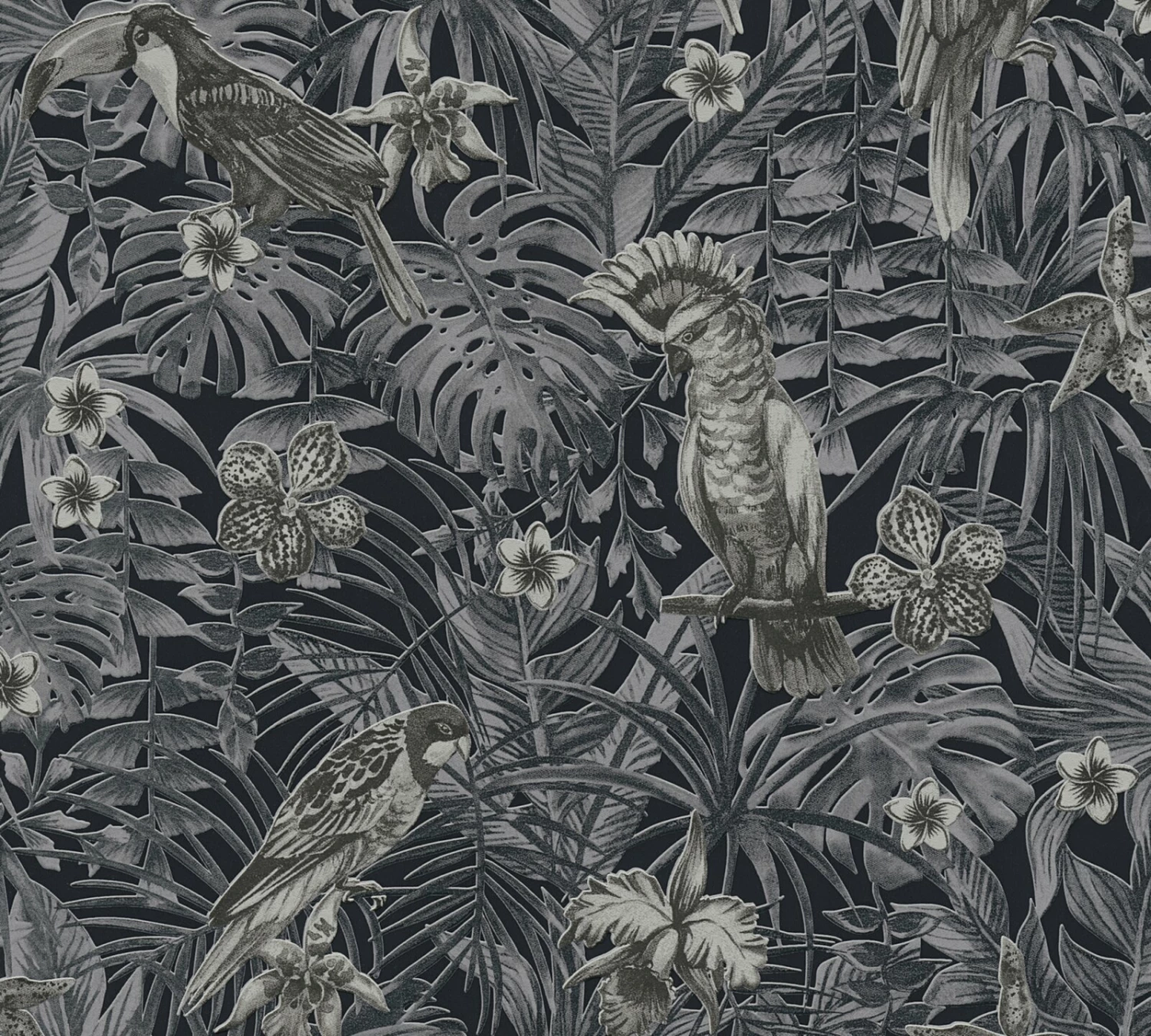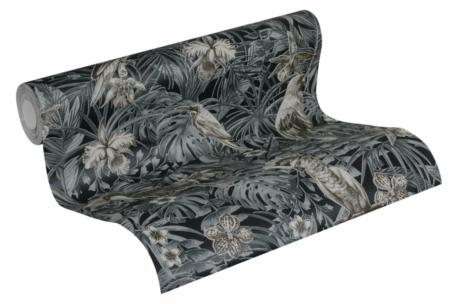 Vliestapete GREENERY – grau-schwarz – 10 Meter