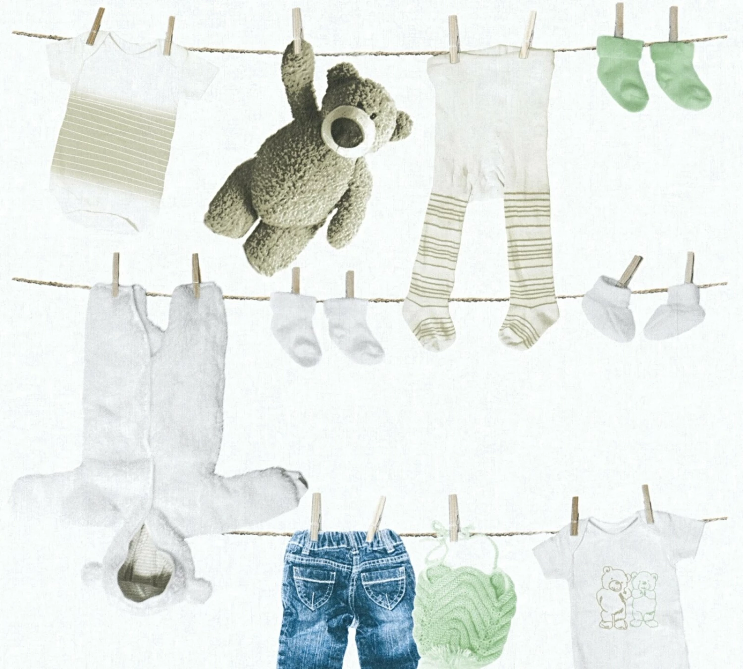 Vliestapete LITTLE STARS – grün-creme – 10 Meter