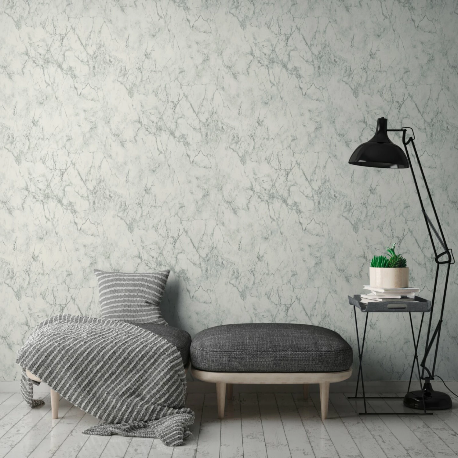 Vliestapete MATERIALS – weiß – Marmor – 10 Meter