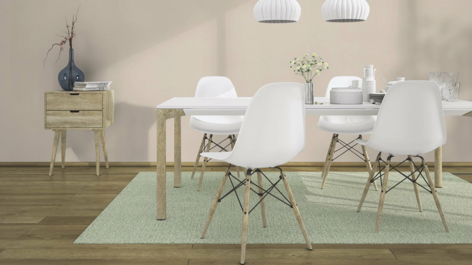 Dieses warme Taupe ist wahrlich ein Hingucker. Der grobkörnige Untergrund erweckt die ruhige Farbe zu dreidimensionalem Leben und schenkt der Wand räumliche Tiefe.
