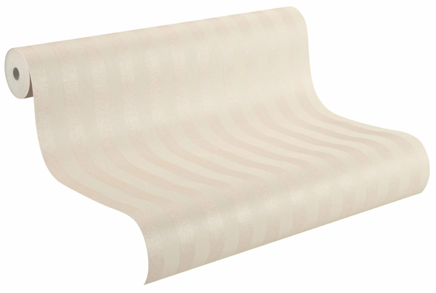 Linientreu zeigt sich das hochwertige Vlies mit den schlanken Streifen und holt in feinem Beige und Champagner und feiner Stoffoptik im Handumdrehen ein wenig royalen Chic ins Haus.