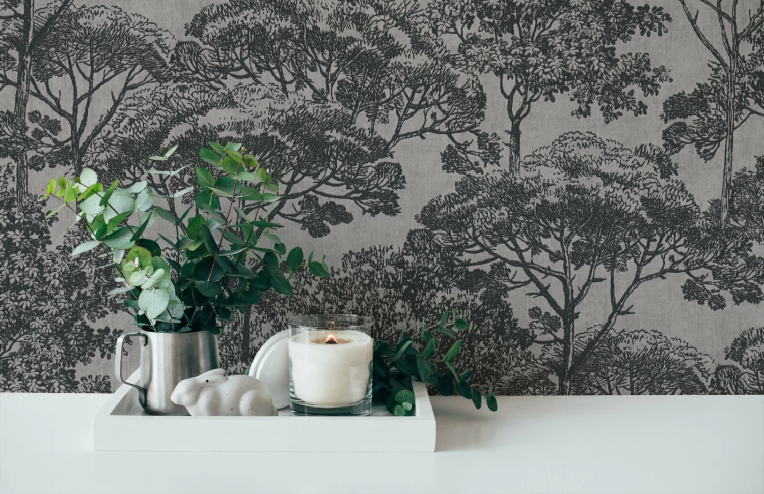 Mit dieser wunderschönen Waldtapete in Grau bekommt ihr Zuhause einen ganz neuen individuellen Stil. Die Maße der Tapete sind 10,05 m x 0,53 m. Das Trägermaterial der Tapete ist ein hochwertiges Vlies. Die Tapete ist scheuerbeständig, gut lichtbeständig und zudem restlos von der Wand abziehbar.