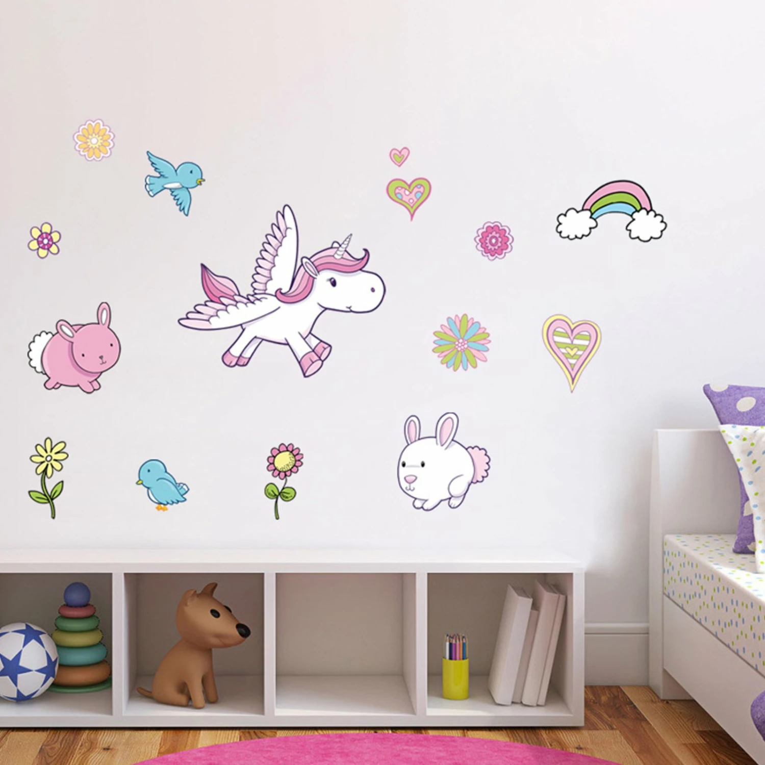 Die Wandtattoos mit dem kleinen Einhorn zaubern schnell eine wohnlichere Atmosphäre. Besonders die Kleinen unter uns werden eine besondere Freude daran haben. Die selbstklebenden Wanddekorationen sind schnell und einfach anzubringen.