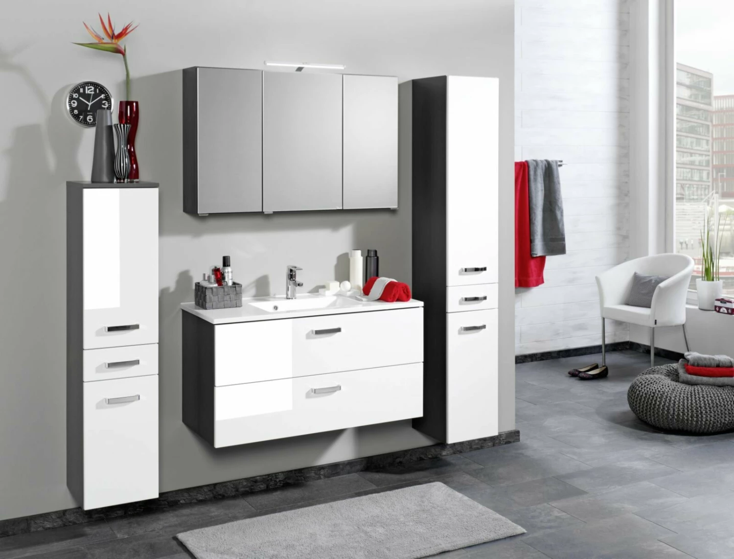 Waschtisch BOLOGNA – grafitgrau-weiß Hochglanz – 100 cm