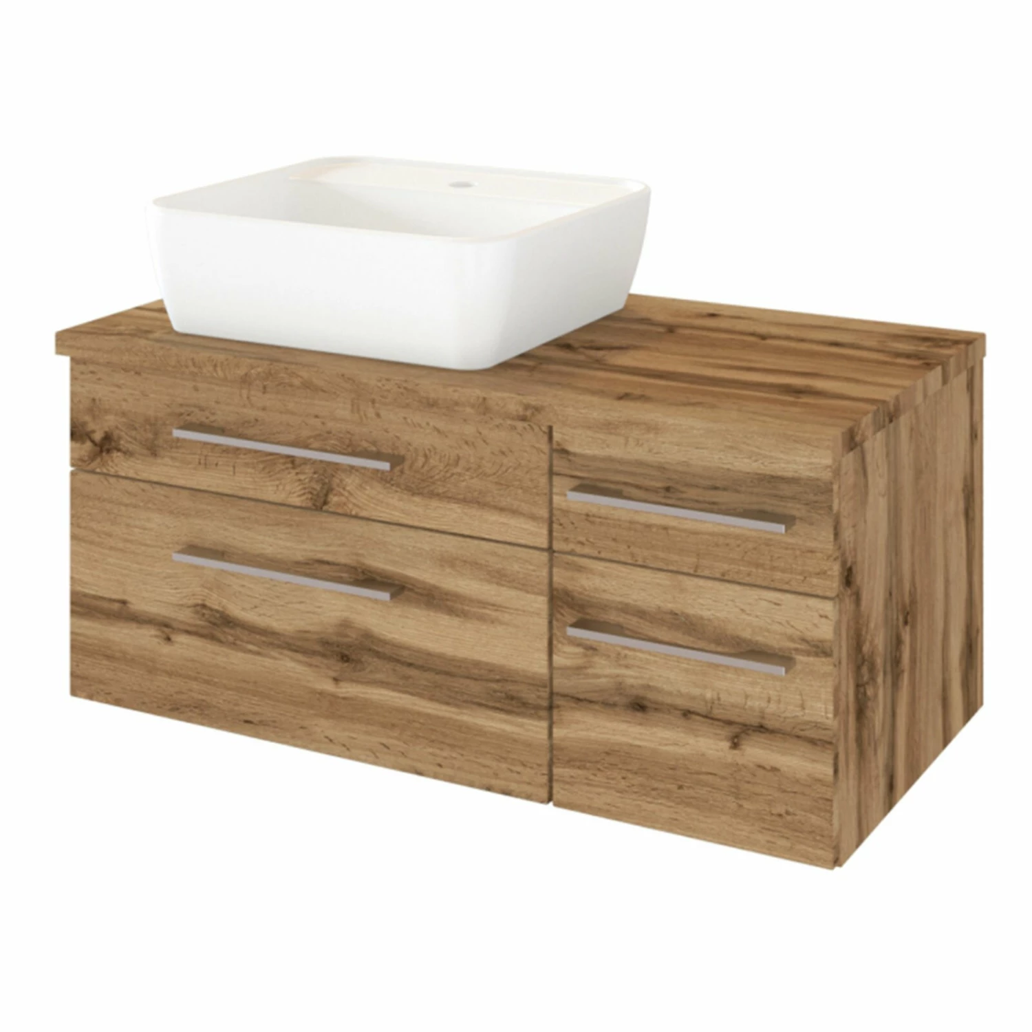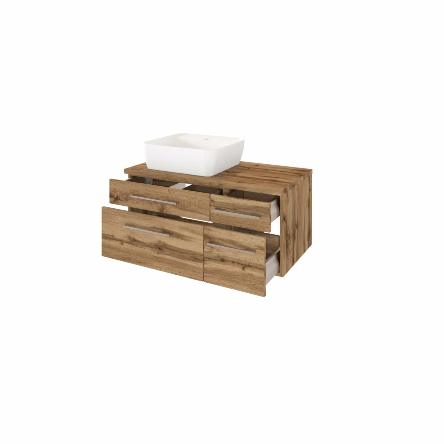 Waschtisch DAVOS – Wotaneiche – 2 Schubkästen – Becken links – 90 cm breit