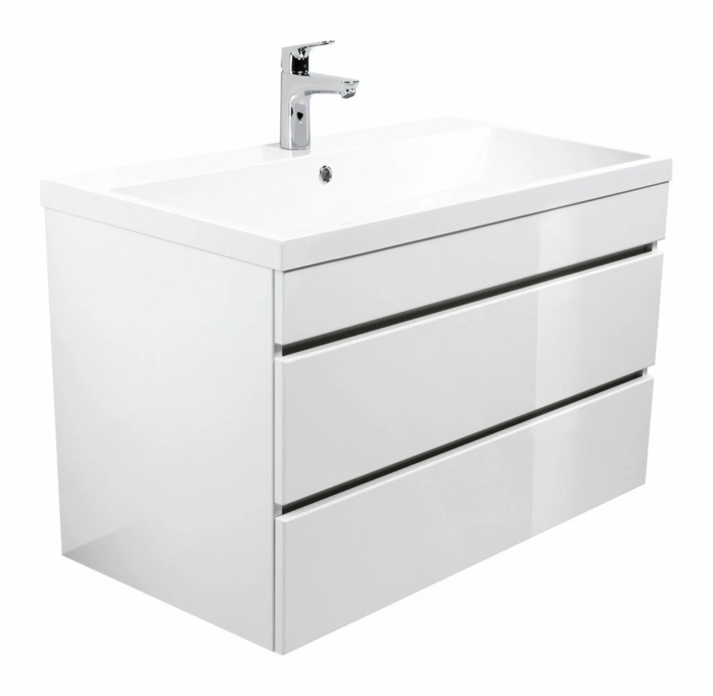 Waschtisch FELINI – weiß Hochglanz-weiß – grifflos – 90 cm