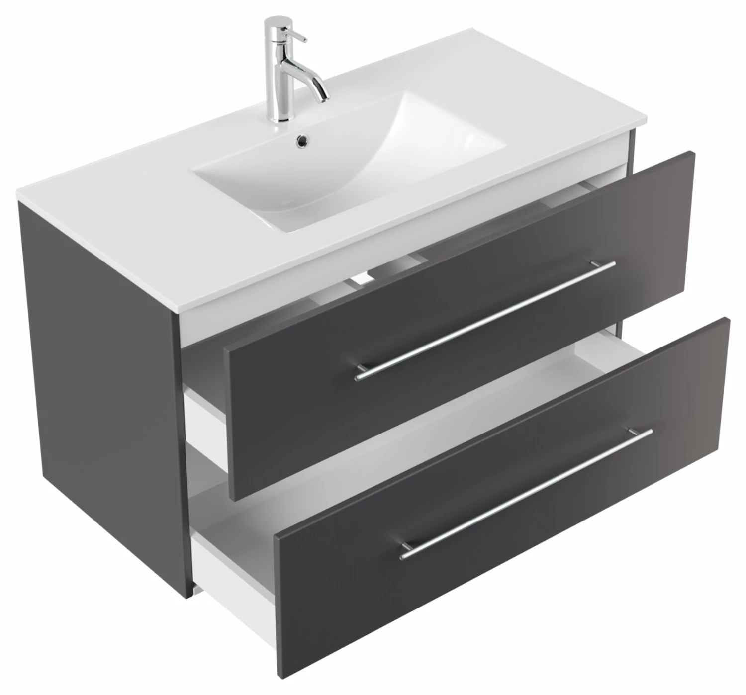 Waschtisch HOMELINE – anthrazit Seidenglanz – mit Waschbecken – 100 cm