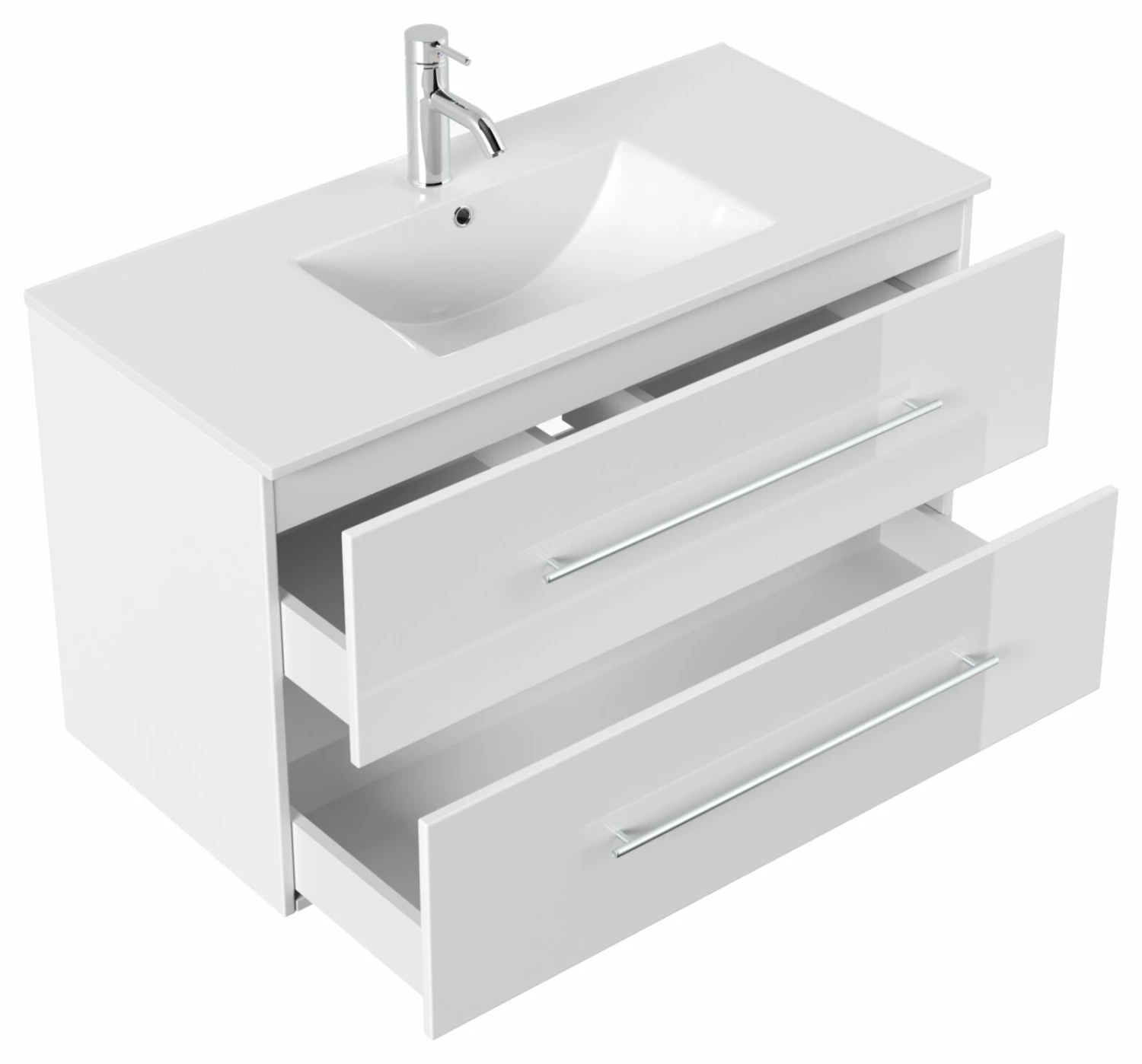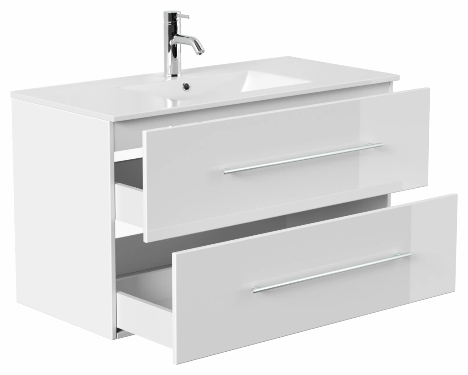 Waschtisch HOMELINE – weiß Hochglanz – mit Waschbecken – 100 cm