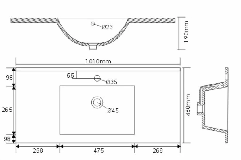 - Maße Waschbecken: BxHxT ca. 101 x 2 x 45 cm