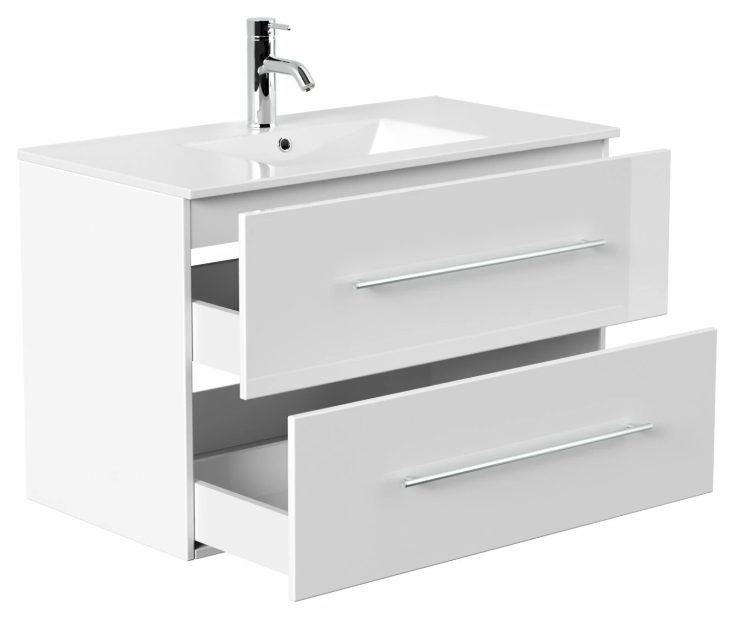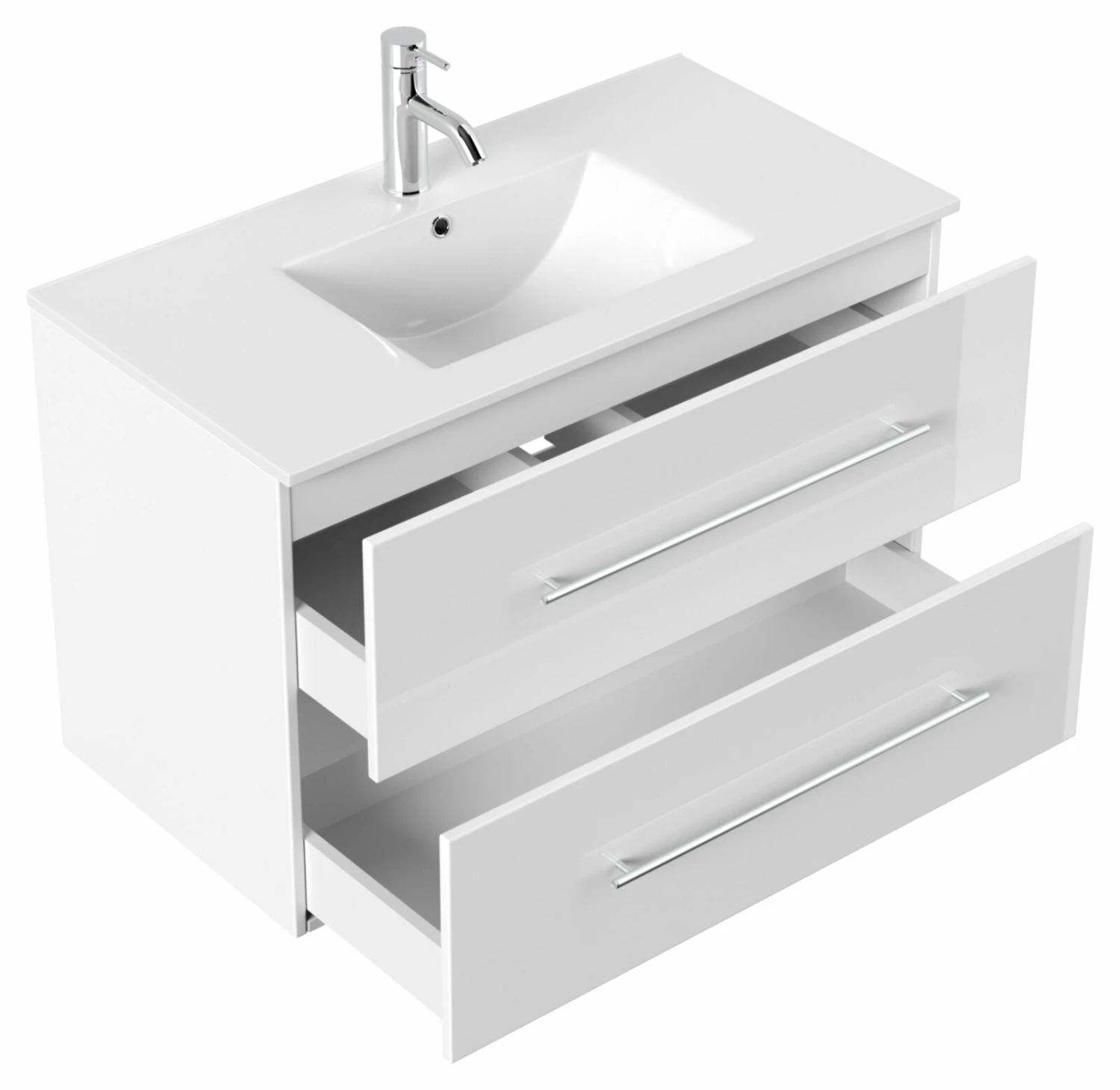 Waschtisch HOMELINE – weiß Hochglanz – mit Waschbecken – 90 cm