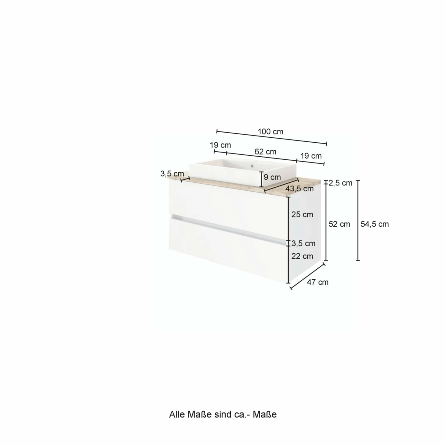 - Maße: BxHxT ca. 100 x 63 x 48 cm
