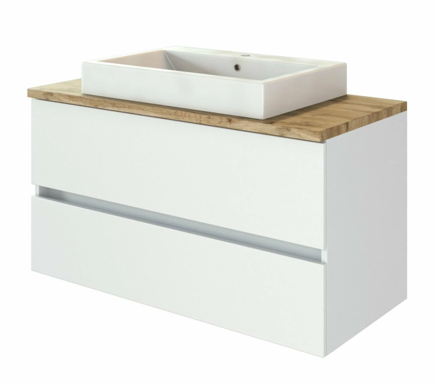 Diesen weißen Waschtisch PIENZA müssen Sie einfach haben. Auf der Abdeckplatte in Wotan Eiche Nachbildung befindet sich das schöne Waschbecken aus Keramik. Außerdem ist der Waschtisch mit zwei Auszügen ausgestattet, in denen Sie all Ihre Badutensilien unterbingen können.